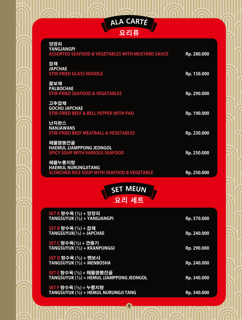 “ Delicious Korean food with good ambience which located in front of MOI building, but still in the same area. You should park at MOI and walk there. Their portion is quite big, enough for 3-4 person. They have small VIP room at the second floor. Jajangmyeon was too soggy at that time. Pork tangsuyuk is nice with their special ginger dipping sauce Gunmandu is nice, crispy outside and has japchae filling inside Pork tonkatsu was served with special sweet sauce and salad Jjamppong soup is very tasty and not too spicy, but has too much clams instead of shrimp or crab You will get free fried yams covered with caramelized sugar and sesame seeds, it is very delicious, unfortunately they were very little, I can’t add more. ”